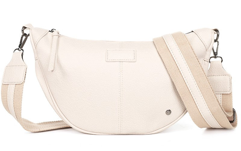 Deze moderne crossbody handtas is een echte must-have voor elke gelegenheid. Het stijlvolle halfronde design gecombineerd met de stevige, brede bagstrap geeft de tas een eigentijdse en luxe uitstraling. Verkrijgbaar in tijdloos beige, off white en klassiek zwart, zodat er altijd een kleur bij zit die perfect bij jouw outfit past.