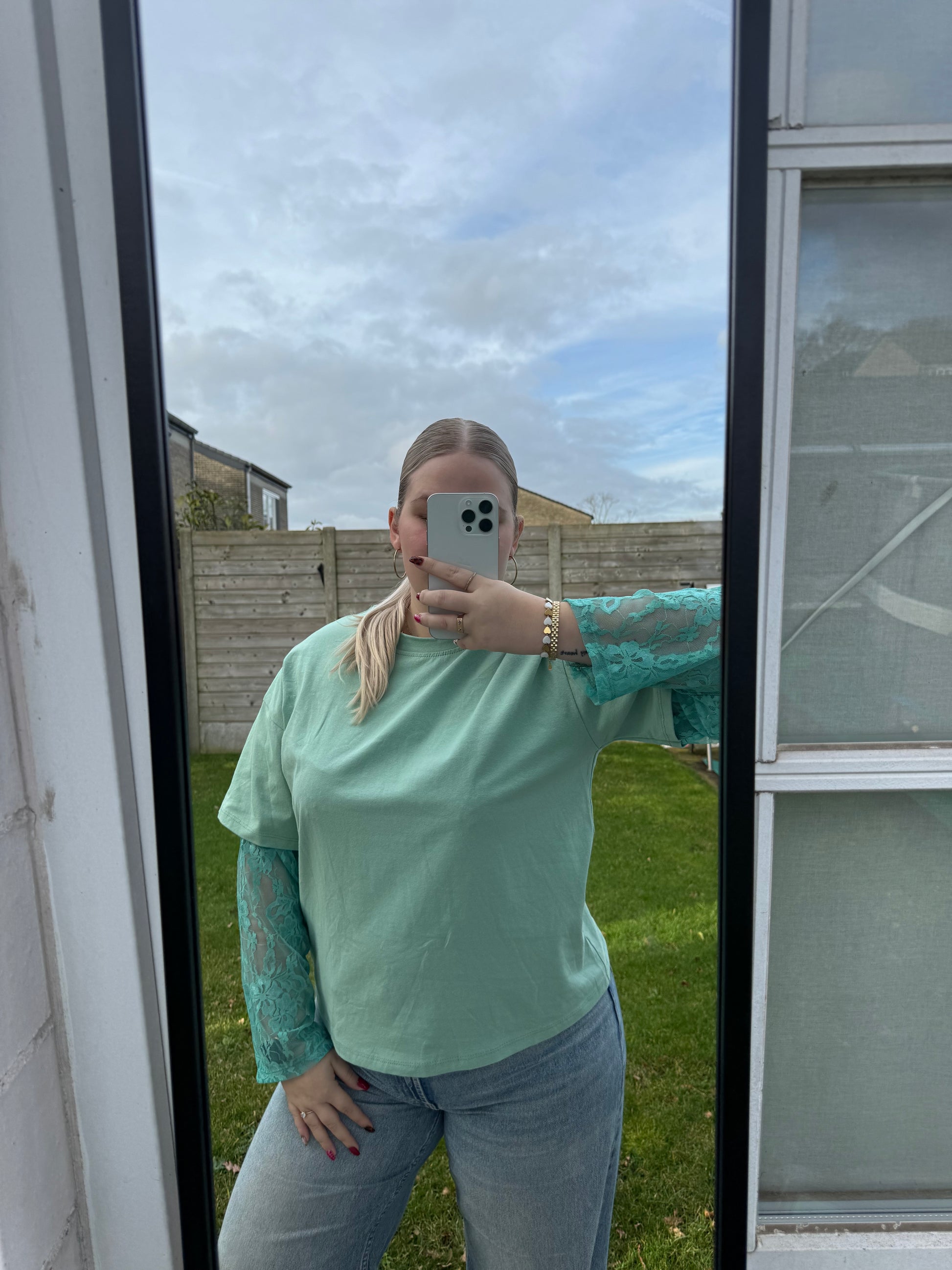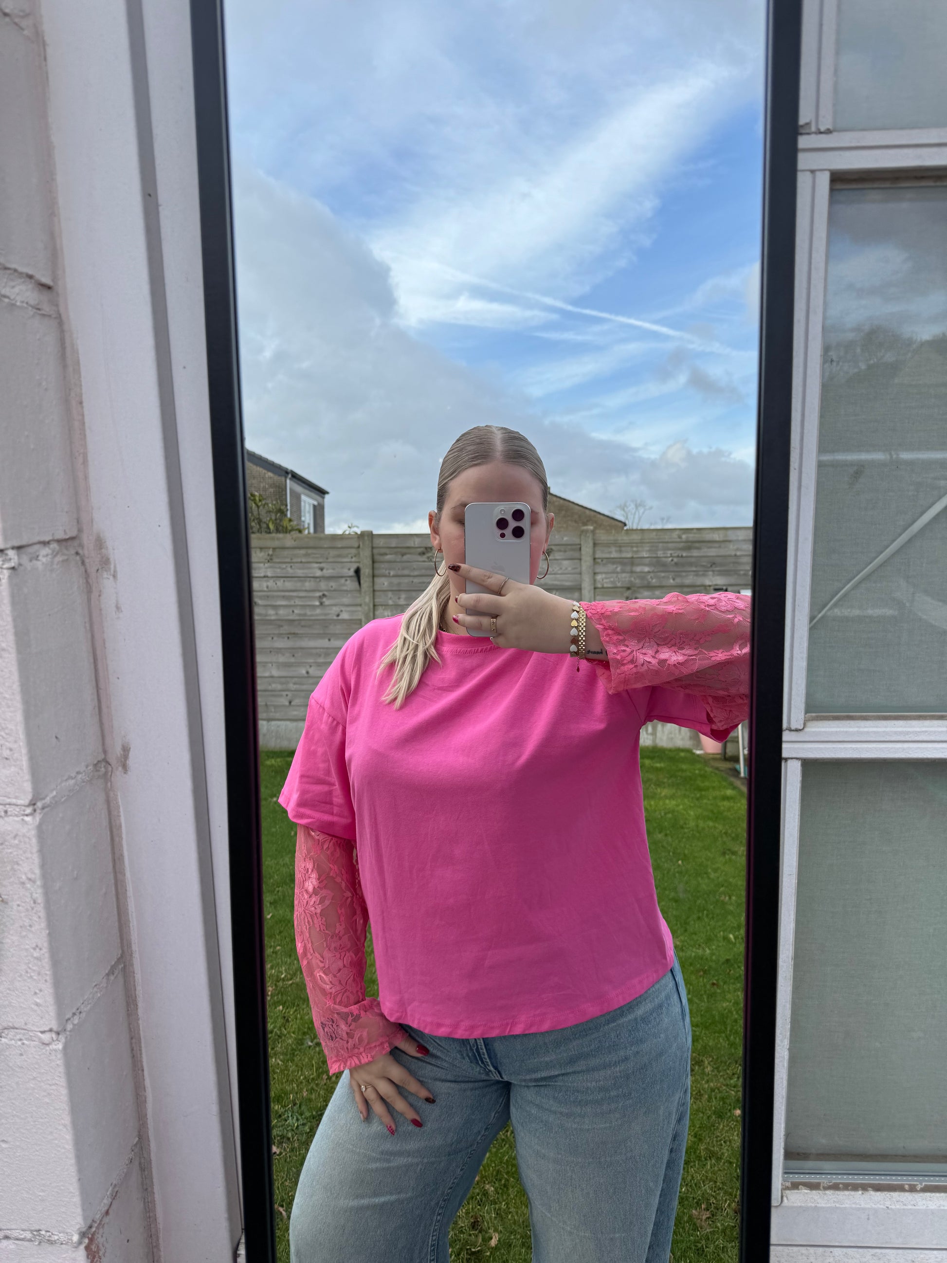 De Lace Love top is dé perfecte combi van comfy en classy. Het zachte T-shirt geeft je dat ultieme chill-gevoel, terwijl de kanten mouwen zorgen voor een vleugje elegantie. Of je nu gaat voor casual met een jeans of all-out fabulous met een rok en hakken – deze top kan het allemaal!